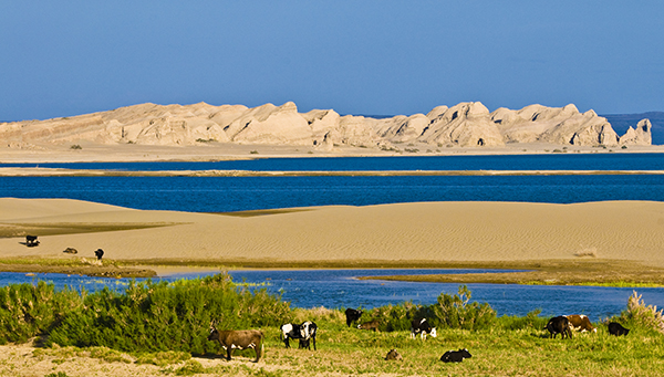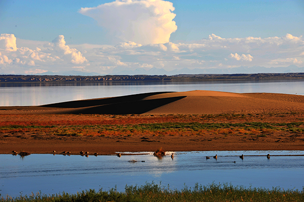 可魯克湖發(fā)源于德令哈北部巴音河,流過200多公里后,形成了面積57平方公里、平均水深7米多的湖泊??婶斂撕挥诘铝罟形髂?2公里處,可魯克湖建有碼頭、游艇、摩托艇、帳房餐廳等接待設(shè)施,網(wǎng)魚區(qū)可以看到養(yǎng)殖場的漁工們捕魚,是柴達木盆地里的一個好地方。托素湖是蒙古語“酥油湖”的意思,位于德令哈市西南40多公里處的懷頭他拉鄉(xiāng)以南,是典型的高原內(nèi)陸咸水湖,占地面積約1876公頃,托素湖湖面遼闊、湖岸開闊,無遮無攔,風(fēng)平浪靜時,湖面煙波浩淼,水天一色,蔚為壯觀,天氣變幻時,湖水浪濤洶涌,浪花飛濺,拍岸有聲,動人心魄。