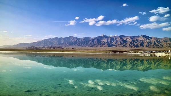 大柴旦翡翠湖位于青海省海西蒙古族藏族自治州境內(nèi),形態(tài)迥異、深淺不一的鹽池宛如一塊塊晶瑩剔透的“翡翠”。約6平方公里的“翡翠湖”名為大柴旦湖,是原大柴旦化工廠鹽湖采礦隊采礦區(qū),經(jīng)多年開采形成采坑,變成了如今美麗的“翡翠湖”。站在湖邊,宛若鏡面般的湖面倒影著藍天白云和皚皚雪峰,宛如仙境。