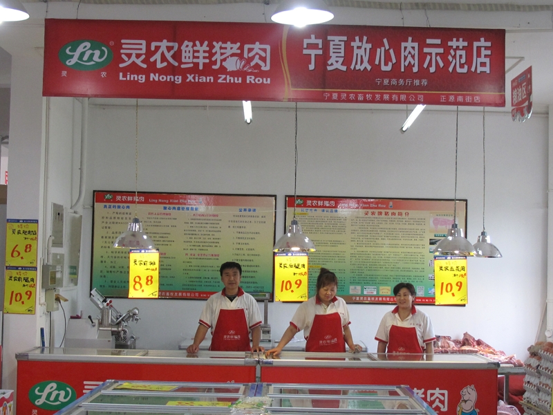 2000年寧夏畜牧發(fā)展有限公司正式成立。2001年靈農(nóng)畜牧公司對(duì)“靈農(nóng)”品牌、企業(yè)形象、企業(yè)發(fā)展進(jìn)行全面策劃宣傳。2003年“靈農(nóng)”鮮豬肉開(kāi)啟超市專營(yíng)柜臺(tái)。2004年超市銷售量已占總量的50%以上,公司靈農(nóng)銷售網(wǎng)點(diǎn)增至33個(gè)。2004年,靈農(nóng)畜牧開(kāi)始承擔(dān)中央儲(chǔ)備肉9萬(wàn)頭活豬儲(chǔ)備任務(wù)。