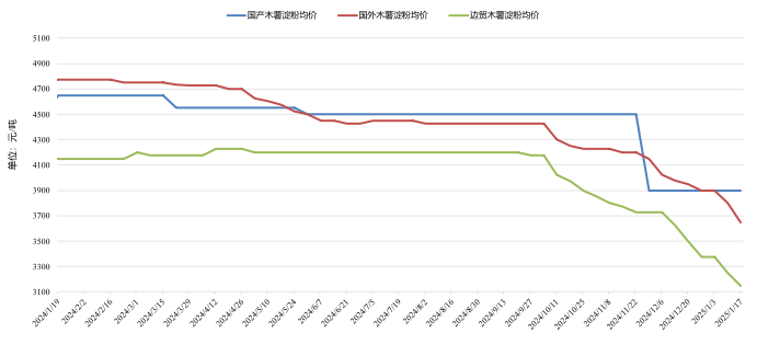 圖3  2024年1月份以來中國(guó)各類木薯淀粉均價(jià)變化情況