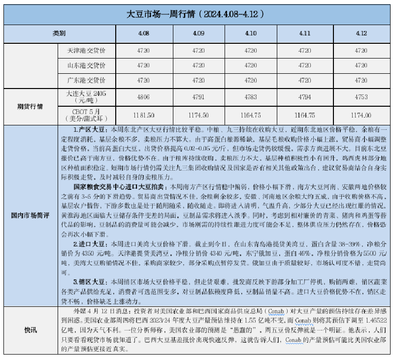 天然橡膠、大豆、玉米市場一周行情(2024.04.08-04.12)