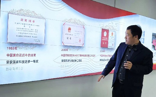 奶牛中心常務(wù)副總經(jīng)理劉林介紹奶牛育種歷程