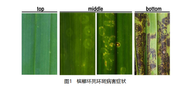 當(dāng)前,海南定安、瓊海、萬(wàn)寧、瓊中、陵水、保亭等主產(chǎn)區(qū)的檳榔正處于果實(shí)的采收期和新苗的定植期,果園內(nèi)溫度適宜、濕度適中,利于傳播檳榔壞死環(huán)斑病毒的刺吸式傳毒昆蟲(chóng)的生長(zhǎng)繁殖,易造成檳榔壞死環(huán)斑病害的大面積流行。該病害發(fā)病初期在新葉基部隱約可見(jiàn)褪綠環(huán)斑,逐漸在中部及底部葉片出現(xiàn)壞死環(huán)斑(見(jiàn)圖),直至葉片徹底壞死。發(fā)病檳榔的葉片稀疏、下垂或伴有黃化現(xiàn)象,嚴(yán)重影響檳榔長(zhǎng)勢(shì)及果實(shí)產(chǎn)量。