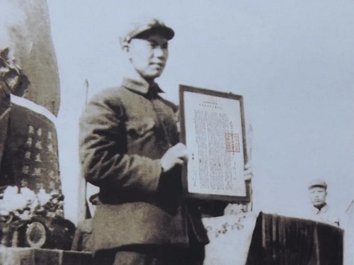 1952年4月20日上午8點(diǎn),102師近萬余官兵正點(diǎn)到達(dá)海門縣三廠鎮(zhèn)廣場(chǎng),在這里集結(jié)并舉行誓師大會(huì)。蘇北軍區(qū)副司令員常玉清,在師首長陪同下檢閱了部隊(duì)后,代表人民革命軍事委員會(huì),向全師指戰(zhàn)員宣布毛澤東主席命令:“中國人民解放軍步兵第102師改編為農(nóng)業(yè)建設(shè)第四師”。