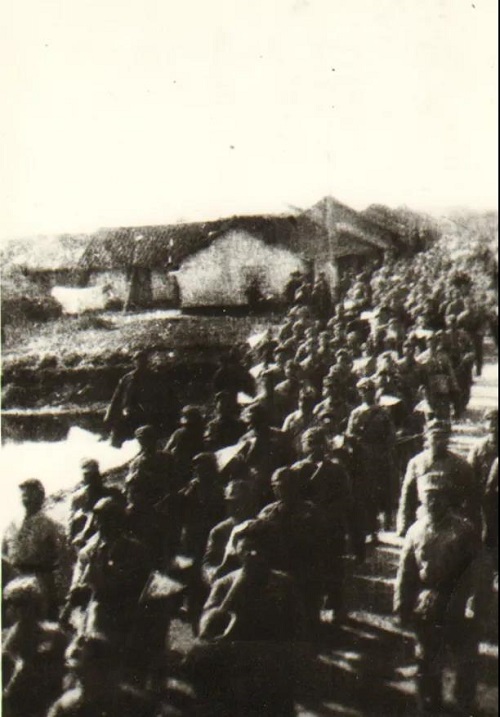 1952年4月22日凌晨,農(nóng)建四師的全體將士,全副武裝,沐浴著帶露的晨曦,揮師北上,向蘇北黃海之濱,蘇北灌溉總渠下游兩岸出發(fā)。出發(fā)時(shí),海門縣縣長茅錫堂率黨政機(jī)關(guān)、學(xué)校、團(tuán)體和從四面八方趕來的數(shù)萬群眾,敲鑼打鼓,在路邊歡送。