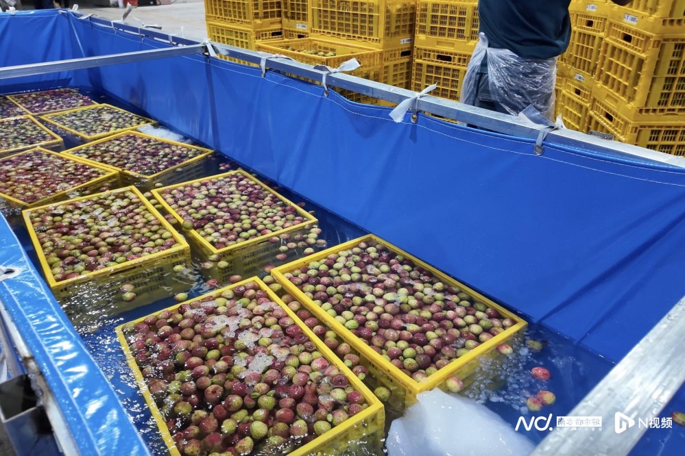 小蜂嗡嗡公司內(nèi),荔枝正進(jìn)行水冷降溫。南都見習(xí)記者 陳宇溪 攝