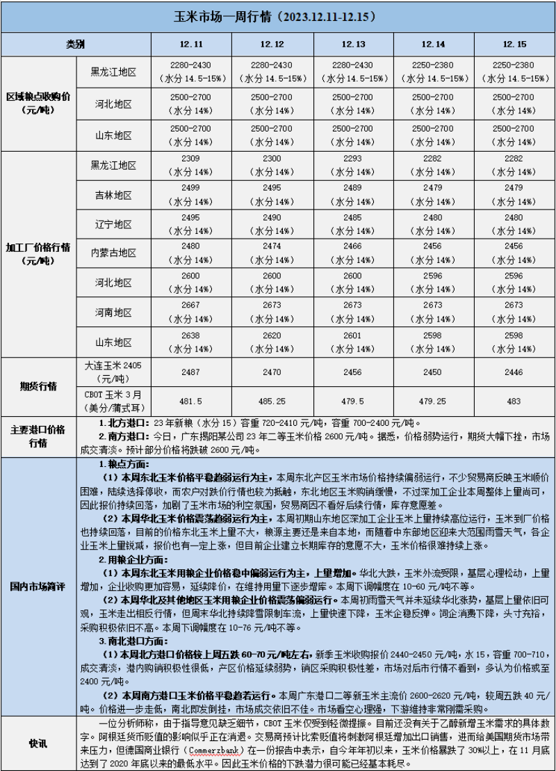 天然橡膠、大豆、玉米市場(chǎng)一周行情(2023.12.11-12.15)