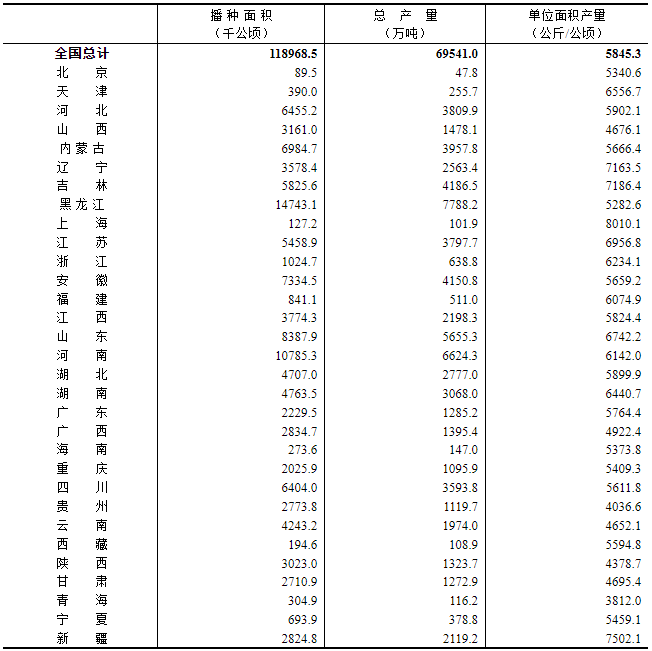 1.根據(jù)甘肅、寧夏、新疆等部分地區(qū)小麥實(shí)際產(chǎn)量對全國夏糧數(shù)據(jù)進(jìn)行了修正。