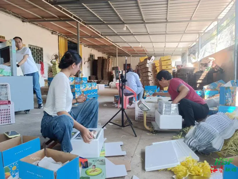 1月15日,在三亞海棠區(qū)南田路的一處芒果分揀基地內(nèi),工人們正熟練地將金黃飽滿的芒果分揀、打包,兩名電商主播在一旁對著鏡頭熱情地推介。當前,海墾神泉集團的早熟芒果已進入銷售高峰期,每天都有新鮮的芒果從這里發(fā)往全國各地。