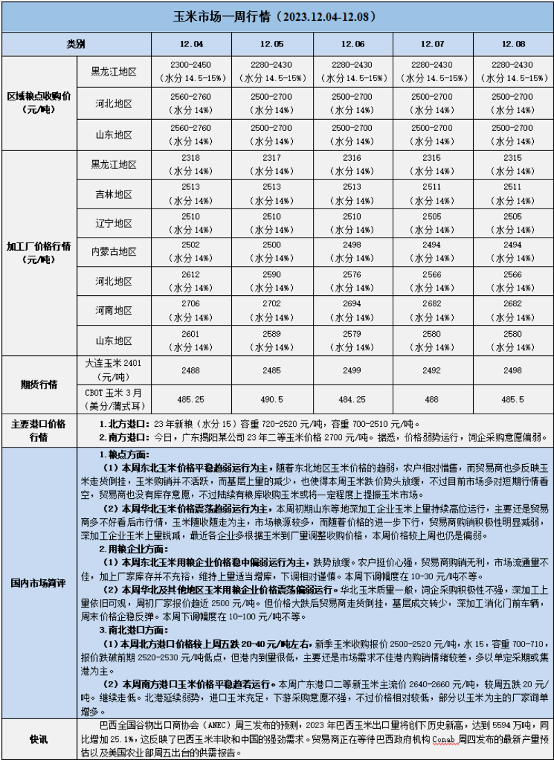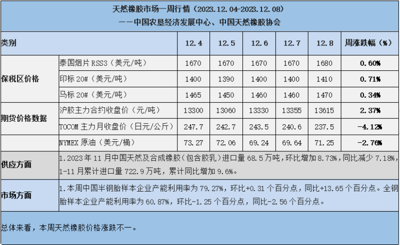 天然橡膠、大豆、玉米市場一周行情(2023.12.04-12.08)
