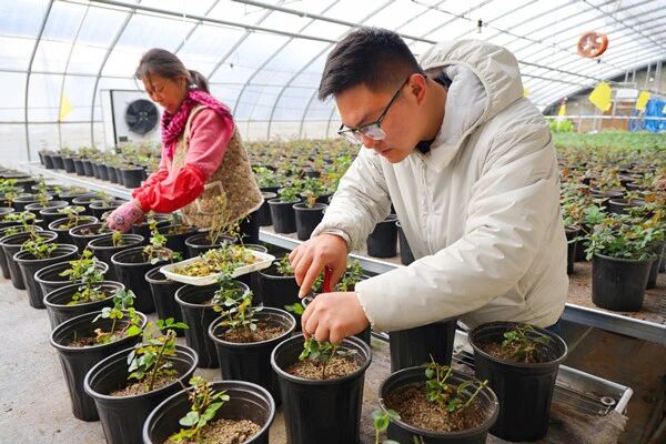 換盆工作完成后,園區(qū)將立即啟動修枝定型工作。技術(shù)人員將根據(jù)不同品種的生長習(xí)性和觀賞需求,對每株花苗進(jìn)行個(gè)性化修剪,優(yōu)化植株形態(tài),使其更加符合市場審美標(biāo)準(zhǔn)。這一舉措不僅能提升盆栽花的觀賞性,也顯著增強(qiáng)了其商品價(jià)值,為銷售贏得了更多優(yōu)勢?!邦A(yù)計(jì)到五月中旬左右,這批精心培育的盆栽花苗就可以成品上市銷售了?!眻@區(qū)技術(shù)員王斯達(dá)滿懷信心地表示,在智能溫控系統(tǒng)和水肥一體化系統(tǒng)的保障下,花苗將順利上市銷售。