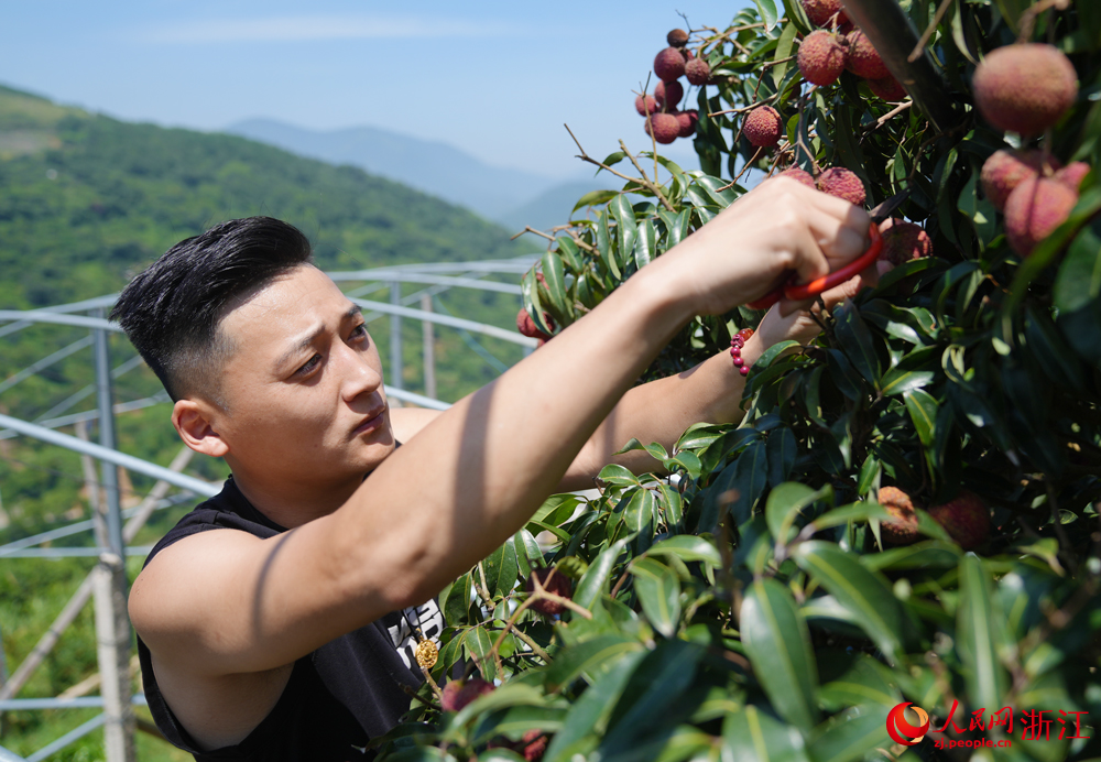 人民網(wǎng)溫州8月10日電 (劉欣蔚、陳陸洵)近日,溫州市蒼南縣馬站鎮(zhèn)的無核荔枝陸續(xù)進(jìn)入采摘期,有效填補(bǔ)了廣東、福建等主產(chǎn)區(qū)荔枝下市后的市場空窗期。一串串紅彤彤、飽滿圓潤的荔枝掛滿枝頭。