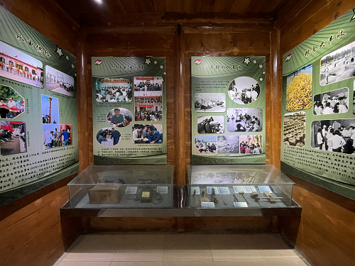 展覽館記載著自1953年農(nóng)場(chǎng)建場(chǎng)以來(lái)的發(fā)展歷程,展現(xiàn)了職工住房從地窩變洋樓、農(nóng)業(yè)生產(chǎn)從人拉肩扛到“三大一化”的喜人變化。一層為歷史展覽,主要展品是農(nóng)場(chǎng)發(fā)展歷程中留下的勞動(dòng)工具及珍貴照片: