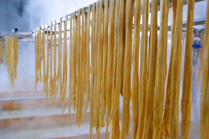 “大燉豆腐上桌嘍”??粗爸鵁釟獾孽r嫩白軟的燉豆腐和金黃色的涼拌腐竹、炒豆皮,垂涎欲滴,食欲大增。眼前的一切,怎么也不能和幾十年前那個設(shè)施簡陋的豆腐作坊聯(lián)系到一起。索倫牧場依托萬畝大豆原糧基地,引進(jìn)現(xiàn)代化生產(chǎn)線,硬是把東北人的家常豆腐做出了包括豆腐、腐竹、豆皮、豆干等在內(nèi)的“豆尚索倫”系列大品牌!