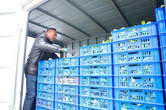 溫室內(nèi)暖意融融,一排排育苗穴盤(pán)整齊排列,嫩綠的白菜苗株型健碩、葉片舒展,在精細(xì)化管護(hù)下盡顯生機(jī)。工作人員們分工協(xié)作、忙而有序,熟練進(jìn)行拔苗、分揀、打包、裝車(chē)等作業(yè),動(dòng)作連貫高效,新鮮的白菜苗被整齊裝箱,即將運(yùn)往周邊種植基地,現(xiàn)場(chǎng)一派繁忙的出貨景象。