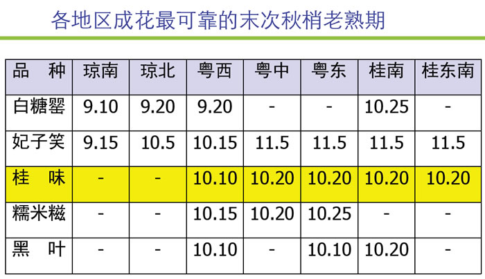 原因分析:秋冬季日照時間長、光照充足、天氣溫暖,是荔枝光合積累的黃金時期。貯藏碳水化合物除滿足成花需求之外,也供給開花和初期坐果之需。荔枝在葉片轉(zhuǎn)綠之后才能進入凈光合狀態(tài)。以見 “白點”時間為節(jié)點,秋梢老熟時間越長,凈光合積累時間越長,積累和貯藏碳水化合物量越多。
