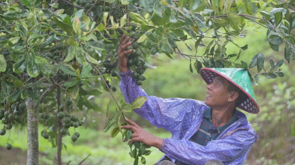 連綿山野間,沉甸甸的堅(jiān)果綴滿(mǎn)枝頭,舉目皆是層層疊疊的綠意和一張張果農(nóng)的笑臉。