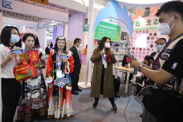 開(kāi)幕當(dāng)天,集團(tuán)展位便吸引眾多網(wǎng)紅前來(lái)打卡,芳香四溢的“云花香”玫瑰、百合成為直播的“背景板”。主播們一邊介紹著云南的風(fēng)土人情、特色美食,一邊拿起紅彤彤的“沁果昭紅”蘋(píng)果,品鑒著醇厚濃香的“云啡”咖啡,向網(wǎng)友推介著云南的區(qū)域果蔬和集團(tuán)的特色商品,集團(tuán)的銷售人員走進(jìn)網(wǎng)紅直播間,推介集團(tuán)綠色農(nóng)產(chǎn)品。