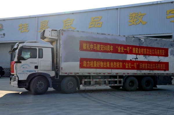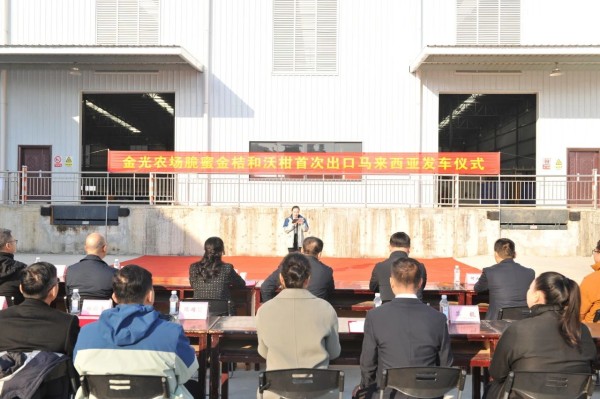 12月25日上午9時(shí),金光農(nóng)場公司“金光一號”脆蜜金桔、沃柑首次出口馬來西亞發(fā)車儀式在果蔬采后處理中心舉行。這是金光農(nóng)場公司加快“桂品出?!钡挠忠挥辛εe措,再度開辟了廣西農(nóng)墾集團(tuán)旗下名優(yōu)特農(nóng)產(chǎn)品走向東盟國家的新市場。