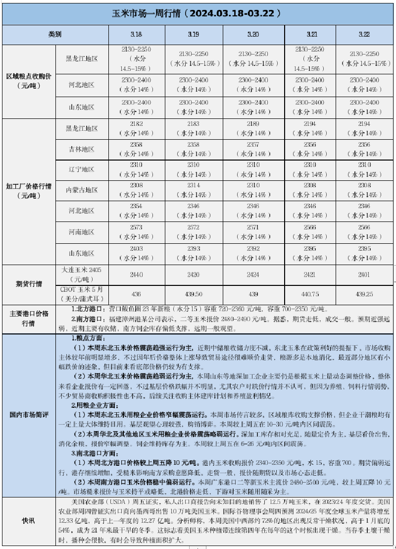 天然橡膠、大豆、玉米市場一周行情(2024.03.18-03.22)