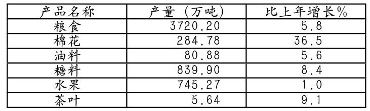 主要農(nóng)產(chǎn)品產(chǎn)量(見表1)。